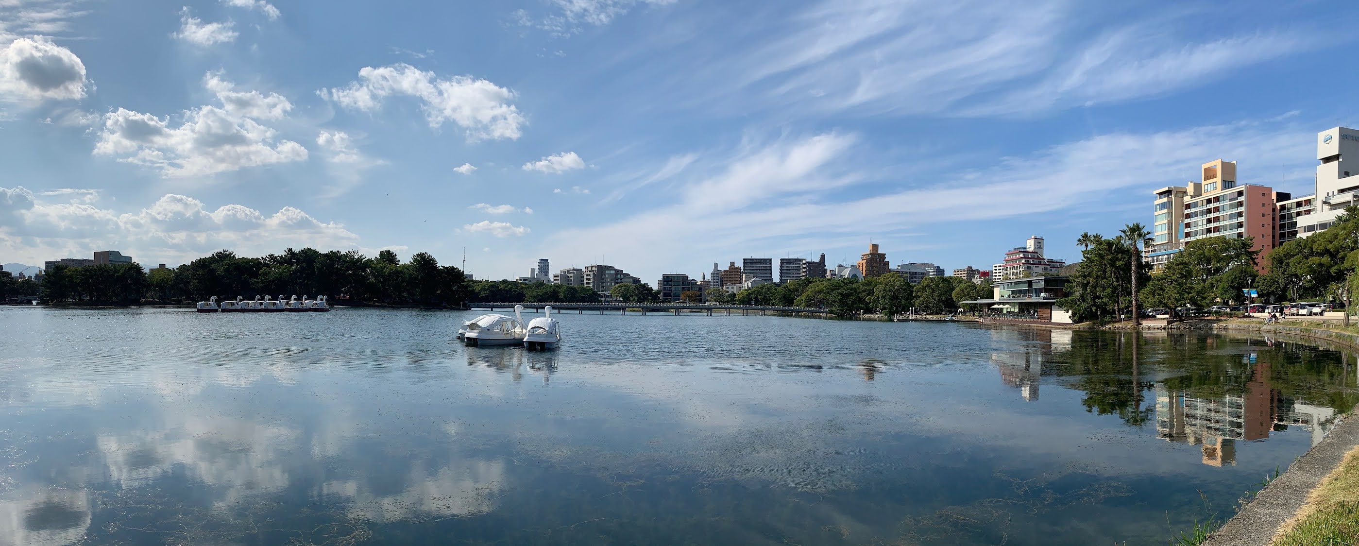 12:08 PMThis large green space in Fukuoka. There is a large pond which was once part of the moat system of Fukuoka Castle.
